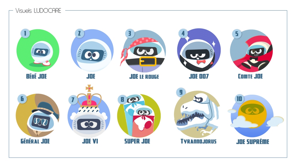 Mais mon travail à Ludocare est allé au delà du motion design et de l’animation… J’ai également eu le plaisir de me frotter au packaging design, à la création de supports print ainsi qu’à l’élaboration d’un univers graphique (brand content) autour de la première solution : JOE, le robot connecté dédié au traitement lié à l’asthme.